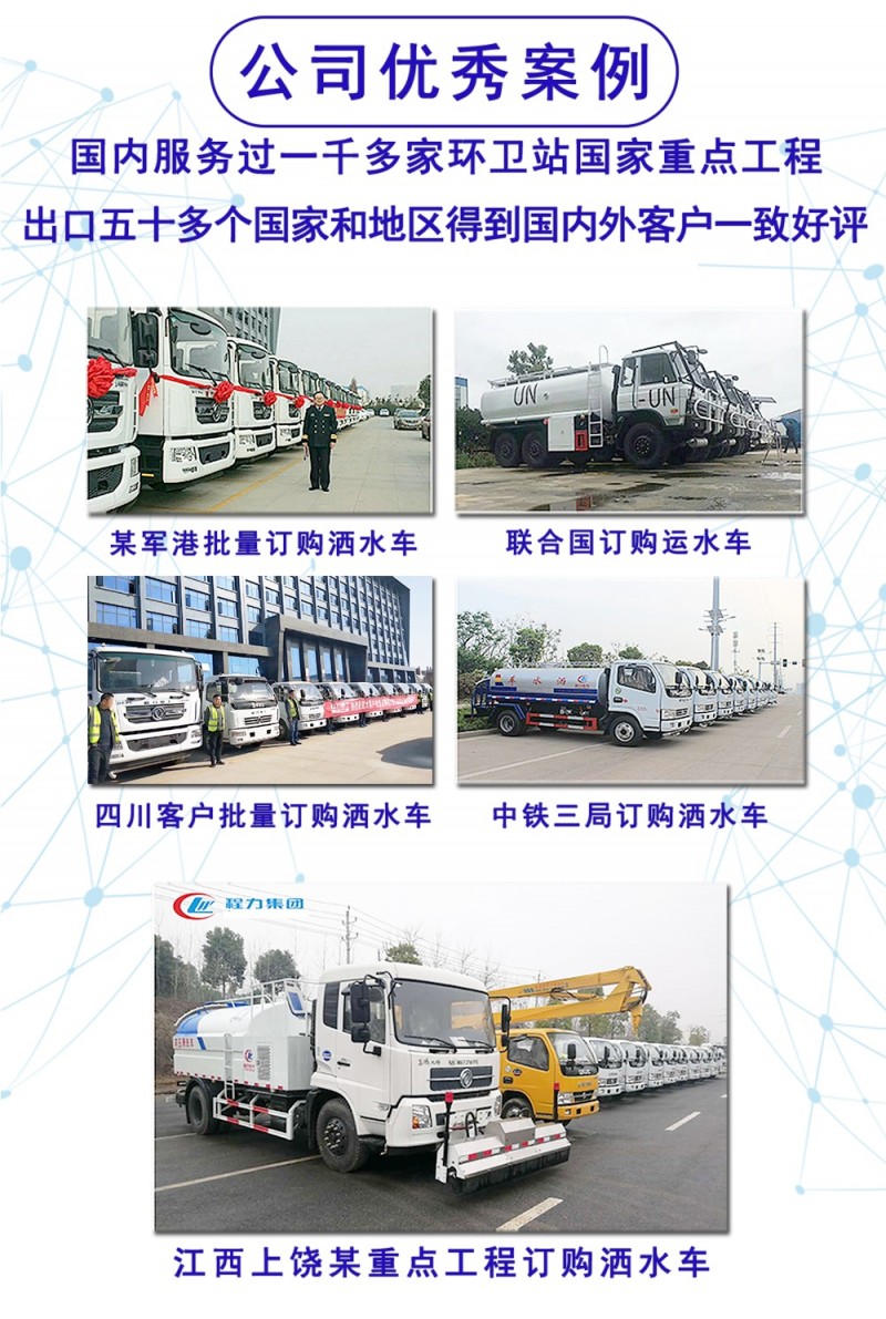 特別說明:程力灑水車全系產品全國范圍內都可以送車上門,客戶滿意后再付清余款。聯系電話:15072966622 周經理