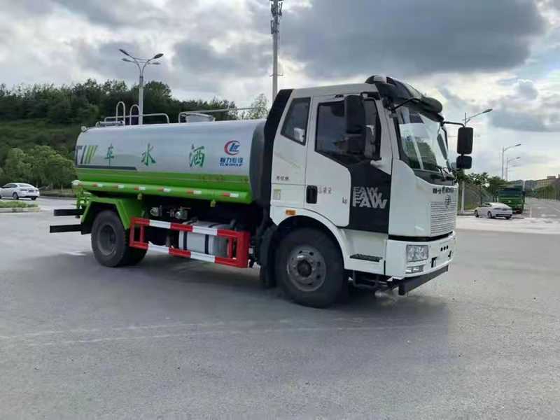 解放J6灑水車,實際容積14.6方,可裝水14噸。整車型號:CLW5180GPS6DX。底盤型號:CA1180P62K1L2A1E6Z、發動機型號:大柴CA4DK1-22E6、變速箱:陜齒8JS85E變速器、車橋:Ф378鑄造橋(自動調整臂、國產ABS)、軸距:4500mm。
