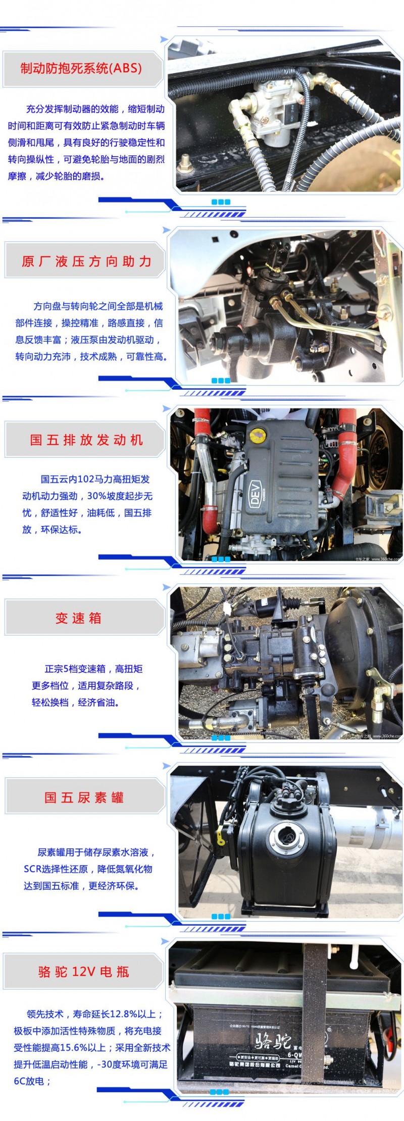 容積4立方,用途廣泛,操作簡單,底盤采用2800軸距,濰柴130馬力發動機,6檔變速箱,6.50鋼絲胎,帶方向助力和原廠空調,上裝配備罐體舉升卸料功能,后蓋液壓開啟液壓鎖緊,拉桿式提升機可掛載120L或240L標準方形塑料垃圾桶,市內通行暢通無阻,整車不超重。銷售服務電話:15072966622(周經理)。