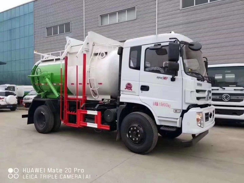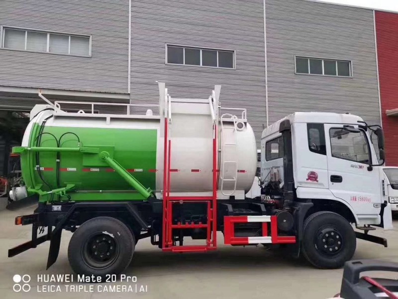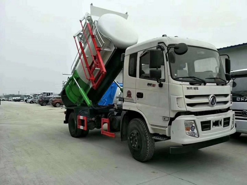 圓形碳鋼罐體,罐體厚度5mm,拉桿提升機(jī)帶上蓋聯(lián)動(dòng);后蓋液壓開(kāi)啟;罐體舉升自卸。選裝內(nèi)軒推鏟卸料,帶渣液分離功能。餐廚垃圾車(chē)可分罐式和廂式。