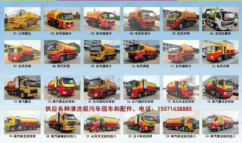 罐體總?cè)莘e15立方米,清洗5方,吸污10方,兩倉(cāng)互通,中間吸污罐體采用8mm碳鋼,新山東濰柴180匹馬力發(fā)動(dòng)機(jī)帶2BE204水循環(huán)泵,進(jìn)氣管加過濾網(wǎng),后蓋4個(gè)卡子鎖緊,罐體兩側(cè)加寬平臺(tái)加護(hù)欄,后部一個(gè)150mm的球閥一個(gè)100mm的球閥,送8米吸污管,后面加一個(gè)LED工作照明燈,加LED箭頭燈,駕駛室上方裝長(zhǎng)警燈配進(jìn)口品浮高壓清洗泵,270流量,19兆帕,配60米內(nèi)徑22#高壓管,組合噴頭10個(gè),清洗卷盤安裝在后后封頭上,整車顏色可選.