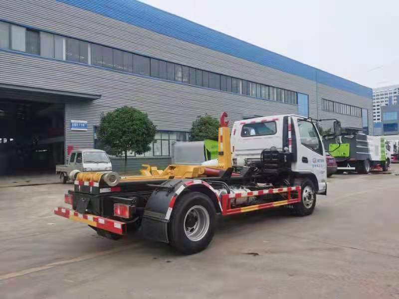 上裝配置:強度合金鋼一體式主勾臂,可選(直臂或伸縮臂),加強型副梁,鑄鋼尾托輪,采用威森博樂多路閥、液壓閥,電控室內外液壓操控裝置,上裝最大提升能力5T-7T,?液壓完成上箱+下箱+鎖緊+自卸等作業(yè),實現(xiàn)一車配多箱的循環(huán)轉運。