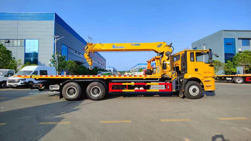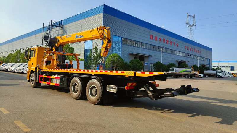 上裝配置:18噸上裝,15噸卷揚(yáng),6毫米厚花紋板,進(jìn)口液壓件,18噸三 節(jié)后托臂, 平板做下沉,板總長8.5米,尾部帶1米液壓翻轉(zhuǎn)尾板,托插座壹對(duì)套,拖叉兩對(duì),抱胎裝置一套,綁帶陸條,輔助小車,輔助氣管兩根,警燈,洗手水箱,大梁尾部加固,另配徐工12噸至14噸吊機(jī)