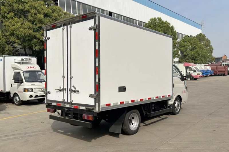 廂體工藝: 廂體材質(zhì)采用內(nèi)外玻璃鋼,中間8CM聚氨酯保溫板,后雙開(kāi)門(mén),廂體右側(cè)靠前選裝開(kāi)側(cè)門(mén),底部采用花紋玻璃鋼板,前部排水孔,門(mén)邊條采用迷宮式橡膠密封條,鋁合金型材包邊,不銹鋼包角,不銹鋼門(mén)鎖,不銹鋼門(mén)框及合頁(yè),廂體內(nèi)節(jié)能LED照明燈。